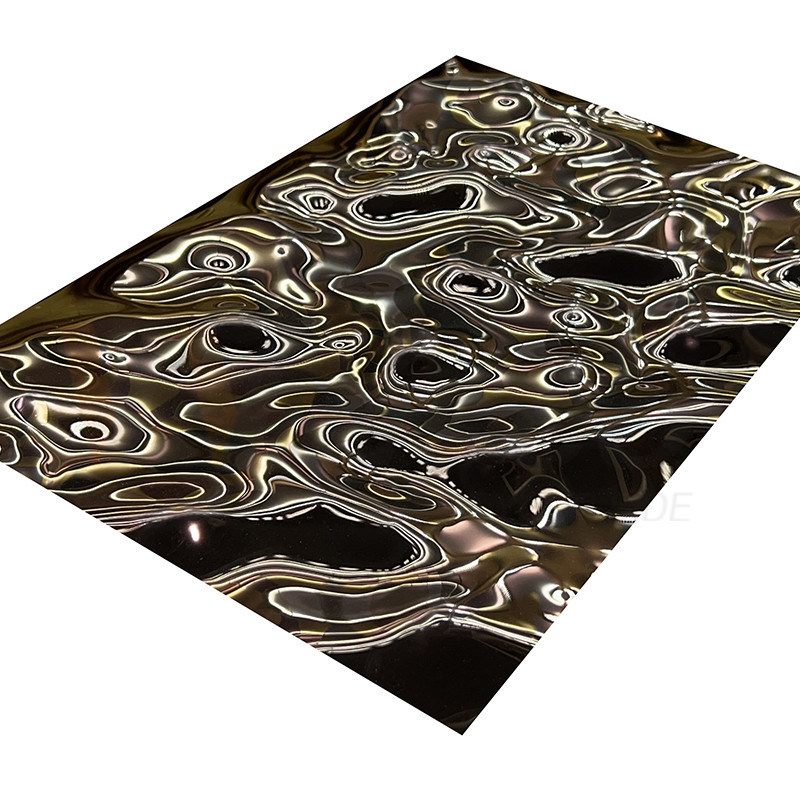 Revestimiento de oro rosa PVD espejo acabado de tamaño mediano de agua ondulado de acero inoxidable hoja en relieve